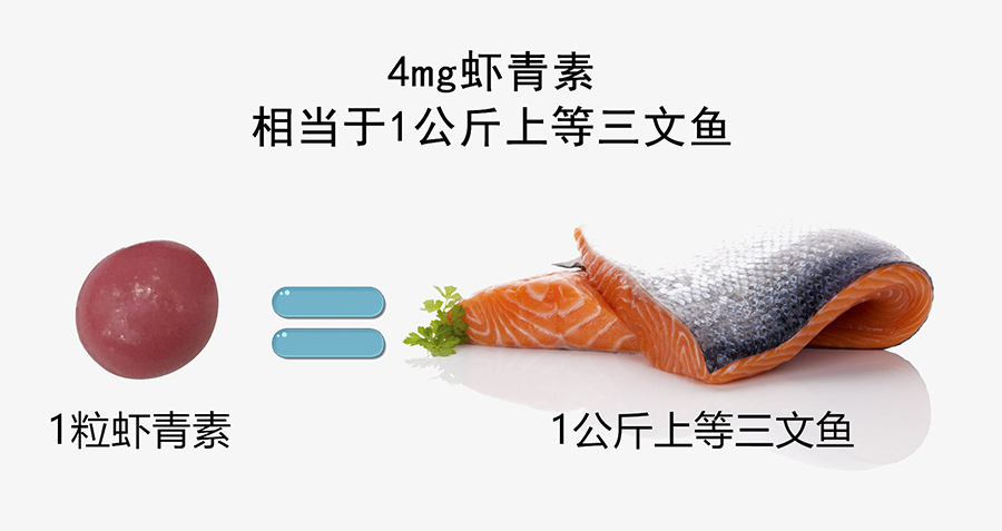 1顆蝦青素凝膠糖果含有相當(dāng)于1公斤優(yōu)質(zhì)三文魚的蝦青素量。